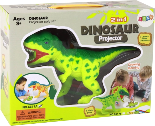 Projektor Dinozaur jest świetnym wsparciem w rozwijaniu kreatywności dzieci. Dzięki temu interaktywnemu urządzeniu dzieci mogą wyświetlać obrazki i rysować je za pomocą kolorowych pisaków, które są częścią zestawu. Projektor również służy jako zabawna lampka z motywem dinozaura.