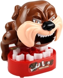 Gryzący buldog to prosta, ale zaskakująco emocjonująca gra stołowa dla małych i dużych. Ustaw buldogowi głowę, posadź go na tylnych łapach i po kolei próbuj „kraść” kości. Nigdy nie wiesz, kiedy błyskawicznie kłapnie paszczą – decydują szczęście, szybkość i odwaga.