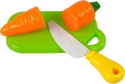 Zestaw składa się z zielonego koszyka wypełnionego różnymi owocami i warzywami, a także z miski, talerzy, noża, deski do krojenia oraz sklepowej wagi. Produkty można rozłożyć na dołączonej desce i pokroić specjalnym nożem. Połówki owoców i warzyw można zważyć na wadze, która jest wierną kopią wagi z supermarketów, a następnie ułożyć je na talerzach lub wymieszać w misce. Po zakończeniu degustacji połówki owoców i warzyw można łatwo i natychmiast połączyć. Jak? Wszystkie produkty wyposażono w specjalne paski na rzep, które umożliwiają ich wielokrotne rozdzielanie i łączenie.