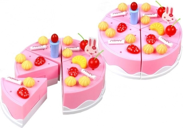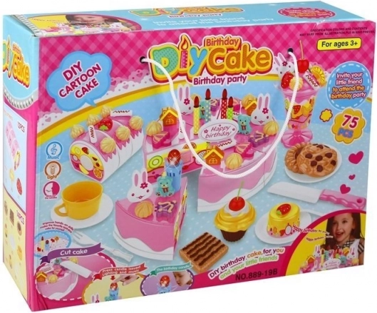 W zestawie znajduje się łącznie 75 elementów – oprócz tortu także deserki, ciasteczka, rolada, talerzyki, sztućce, świeczki oraz mnóstwo ozdób, które można łatwo wpiąć w tort. Dzieci ćwiczą motorykę małą, współpracę i komunikację podczas wspólnej zabawy w cukiernię lub urodzinowe przyjęcie.