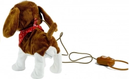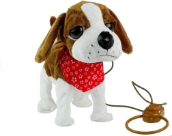 Interaktywny pluszowy piesek jest wykonany z miękkiego, nietoksycznego i ekologicznego materiału, przyjemnego w dotyku. Zabawka ma duże ciemne oczy, wesoło machający ogon i czerwoną chustę dla większego uroku. Długa smycz z kontrolerem pozwala dziecku łatwo sterować ruchem pieska, czyniąc zabawę bardzo realistyczną i interesującą.
