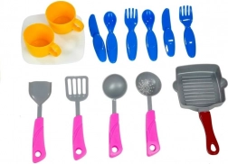 Ta zabawka zawiera kompletny zestaw kuchenny, składający się z kuchni ze zlewem, patelni, 2 talerzyków, 2 kubeczków oraz zestawu sztućców, w tym łyżki, widelca i noża. Dzieci mogą używać łopatki i chochli, aby symulować gotowanie i zmywanie naczyń.