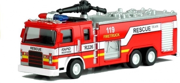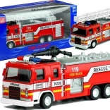 Wóz strażacki, który wciągnie Twoje dziecko w świat odwagi i akcji. Dzięki skali 1:32 ta zabawka oferuje szczegółowe wykonanie, które naśladuje prawdziwe wozy strażackie. Zawiera niebieskie światła i napisy, które czynią z niego doskonałą replikę realnego samochodu strażackiego.
