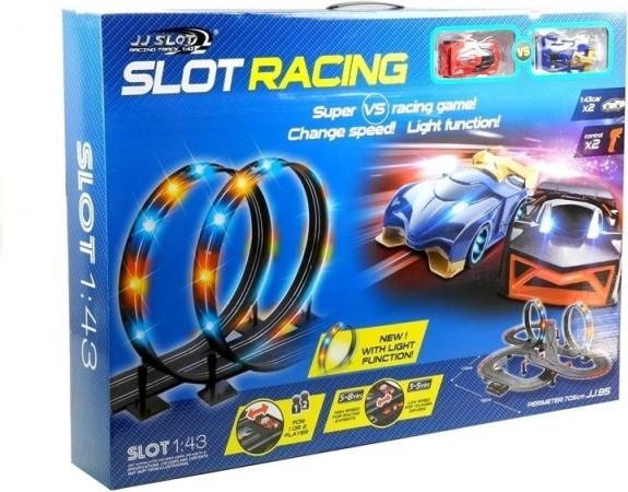 Realistyczna autodroga z dwiema pętlami i kolorowym oświetleniem LED oferuje płynne i emocjonujące wyścigi dwóch kierowców jednocześnie. Dzięki czytelnemu panelowi sterowania łatwo ustawisz prędkość toru i aut dla początkujących i zaawansowanych oraz wybierzesz liczbę graczy. Montaż jest prosty i przyjemny – zabawa zaczyna się już podczas składania.