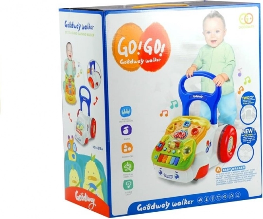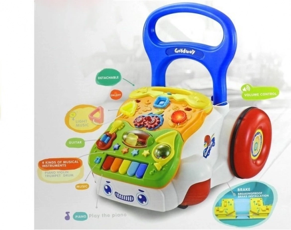 To multifunkcyjne chodzik jest zaprojektowane dla najmłodszych, aby wspierać pierwsze kroki i samodzielną zabawę. Przedni panel można łatwo odpiąć i używać jako samodzielnej interaktywnej zabawki ze światełkami, dźwiękami i muzyką. Dolna część jest wyposażona w hamulec, który można włączyć do zabawy w miejscu.