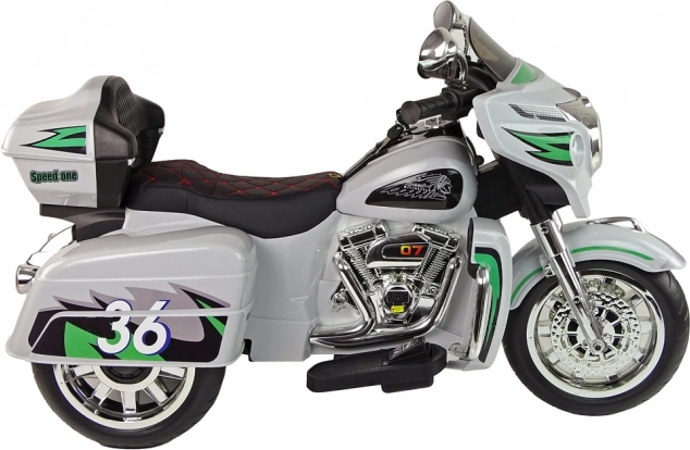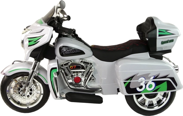Model nawiązuje do stylu motocykli turystycznych, oferując małym kierowcom autentyczne elementy, takie jak panel kokpitu, reflektory i oparcie. Stabilne podwozie i napęd elektryczny wspierają płynną jazdę po równej nawierzchni.