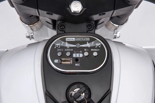 Na wyposażeniu znajduje się tylny schowek na drobiazgi, czytelny panel pokładowy z kluczykiem oraz wejścia multimedialne (USB, mikrofon) do ulubionej muzyki. Trójkołowiec wykonano z wysokiej jakości plastiku, jest łatwy w utrzymaniu i doskonale sprawdzi się do codziennej zabawy.