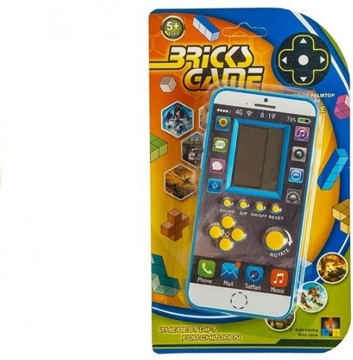 Prezentowana elektroniczna gra wygląda jak telefon komórkowy. Biała obudowa z niebieskimi akcentami doskonale współgra z błyszczącym nadrukiem na przedniej stronie produktu. Wokół wyświetlacza znajdują się ikony przypominające te, które dziecko zna z telefonów rodziców – galeria, SMS, aparat czy odtwarzacz muzyki. Dziecko będzie miało wrażenie, że ma własny telefon komórkowy. Pod nimi znajdują się żółte przyciski funkcji gry. Dzięki nim można włączyć i wyłączyć grę, zresetować zabawkę lub uruchomić melodię. Pozostałe przyciski służą do nawigacji w wybranej grze. Kieszonkowa wersja zabawki kryje w sobie szereg różnych gier, w tym Tetris, węża czy czołgi, więc umili dziecku chwile w autobusie lub podczas przerwy w szkole.