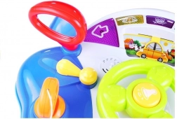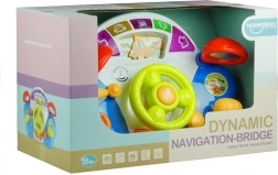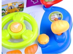 Ta interaktywna zabawka oferuje wiele kolorowych elementów i dźwięków, które przyczyniają się do rozwoju umiejętności. Idealna do rozpoznawania kształtów i kolorów, zapewnia dwa poziomy głośności do dostosowania do różnych środowisk i pór dnia. Ergonomiczna kierownica jest łatwa do trzymania w małych rączkach i zawiera 7 rodzajów dźwięków, oświetlone wskaźniki oraz obrotowe lusterka. Dzieci mogą manipulować kluczykiem w przełączniku oraz przyciskiem uruchomić dźwięk silnika. Ruch kierownicy również porusza samochodzik po trasie.