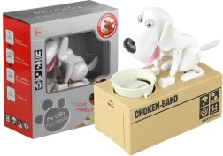 Chcesz nauczyć swoje dziecko, jak oszczędzać pieniądze? Interaktywny piesek Ci w tym pomoże! Wesoły pies zbierający monety zachęci Twoje dziecko, aby odkładało swoje pieniądze. Piesek to świetna zabawka, która nie tylko bawi, ale też uczy – idealna na pierwsze oszczędności Twojego dziecka. Ten uroczy piesek nie przepuści żadnej monety! Bez obaw powierz mu swoje oszczędności. Będą bezpieczne, a Ty możesz je w każdej chwili wyjąć.