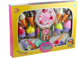 Zestaw zawiera 32 elementy do organizowania wyimaginowanych urodzinowych przyjęć z tortami, lodami i muffinkami.