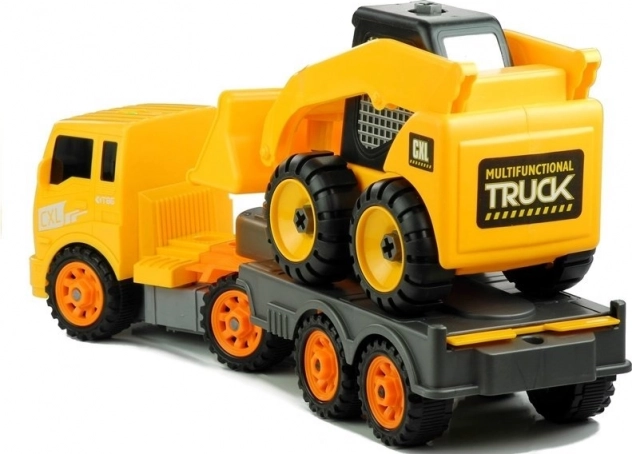 W zestawie znajdują się również narzędzia, takie jak śrubokręt z wymiennymi końcówkami, które pozwalają dzieciom odkręcać różne elementy, takie jak koła, łyżka czy naczepa. Dopracowane detale i przyciemniane szyby zwiększają atrakcyjność tych zabawek. Oba pojazdy wykonane są z bezpiecznych, certyfikowanych materiałów, gwarantujących długą i bezpieczną zabawę.