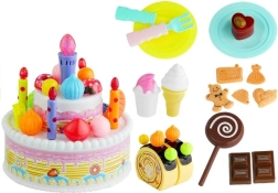 Zawiera tort, roladę, ciasteczka, lody, czekoladki oraz niezbędne akcesoria do wciągającej zabawy.