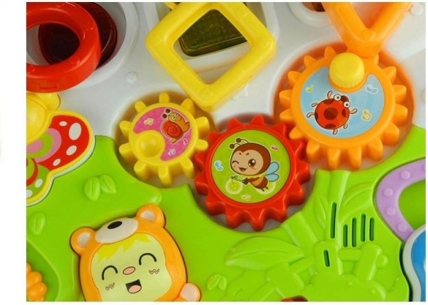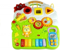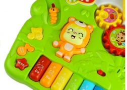 Kolorowe klawisze 1–7, tryby zębate i świecące kształty rozwijają małą motorykę, poczucie rytmu oraz postrzeganie kolorów i kształtów. Słoneczko miga w rytm muzyki.
