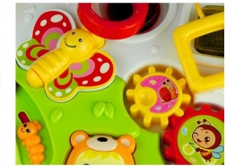Stabilne wsparcie dla pierwszych kroków oraz samodzielnie używany interaktywny panel ze światłami, dźwiękami i wieloma aktywnościami do nauki i zabawy w domu i w podróży.