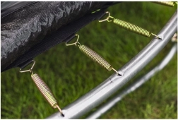 Trampolina jest przeznaczona dla dzieci od 3 lat oraz dorosłych o wadze do 150 kg. Sprężyny zapewniają płynne i energetyczne wybicie, a kołnierz osłaniający chroni przed kontaktem ze sprężynami. Dzięki materiałom odpornym na korozję i warunki atmosferyczne nie ma potrzeby demontażu przy każdym załamaniu pogody. Łatwy montaż ucieszy każdego, kto chce szybko zacząć skakać.