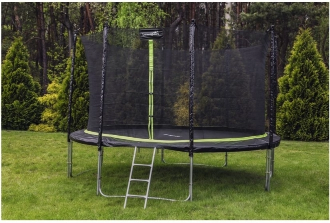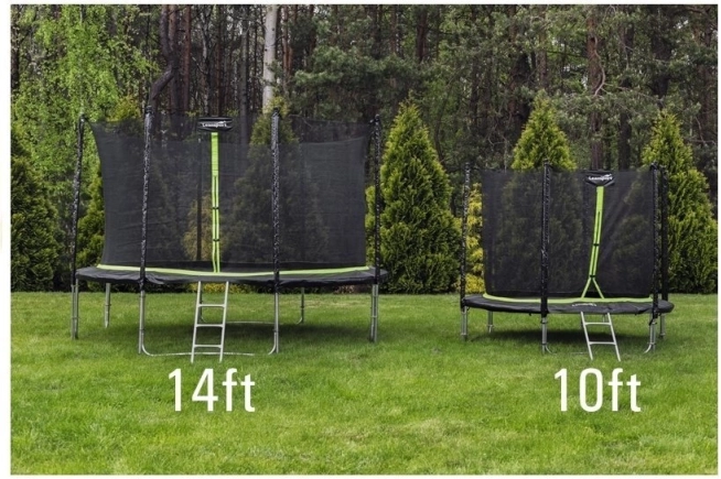Duża ogrodowa trampolina LEAN SPORT PRO 14 ft (426 cm) z siatką ochronną i dwustopniową drabinką zapewnia bezpieczną zabawę dla dzieci i dorosłych. Solidna konstrukcja z wysokiej jakości materiałów jest odporna na korozję i warunki pogodowe, wysoka siatka (ok. 180 cm) zapobiega wypadaniu, a zoptymalizowana liczba sprężyn gwarantuje doskonaite wybicie i dynamiczne skoki. Maksymalne obciążenie 150 kg spełni potrzeby całej rodziny.