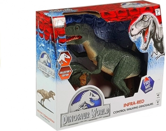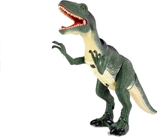 Interaktywny T-REX wiernie inspirowany jest jednym z największych lądowych drapieżników. Po naciśnięciu przycisku uruchamia się ryk, ruch głowy i otwieranie paszczy, którym towarzyszą efekty świetlne w oczach. Zdalne sterowanie oferuje proste kierowanie – dźwięki i ruchy głowy jednym przyciskiem, chód do przodu drugim.