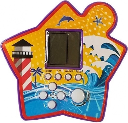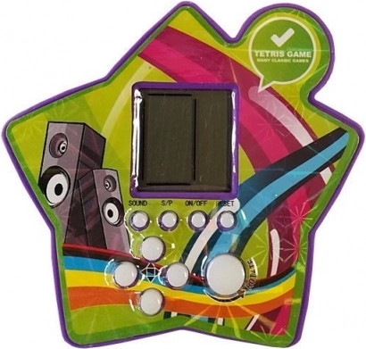 Elektroniczna gra w kształcie gwiazdy jest bardzo lekka i dzięki kompaktowym wymiarom można ją łatwo zabrać ze sobą. Zawiera ekran i białe przyciski do funkcji gry, takich jak uruchamianie, pauza, wyciszenie dźwięku czy reset.