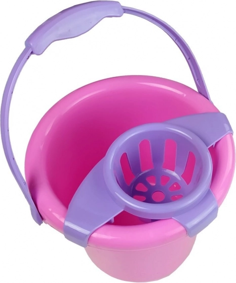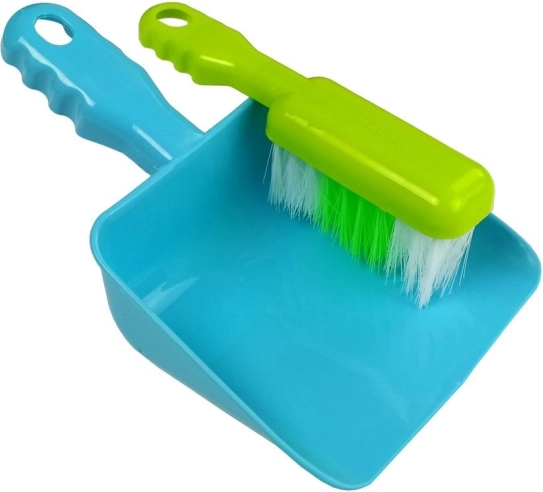 Zawiera małą miotłę z szufelką, mop i wiadro do kompletu do sprzątania.