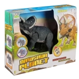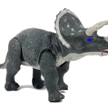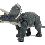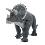 Poznaj doskonałą replikę dużego dinozaura Triceratopsa, który żył 125–100 milionów lat temu. Model został zaprojektowany z wyrazistą czaszką i masywną, umięśnioną sylwetką. Zasilany trzema bateriami „AA” 1,5 V, po włączeniu dinozaur zaczyna chodzić, ryczeć i poruszać głową, zapewniając realistyczne wrażenia dzięki efektom świetlnym, takim jak miganie oczu.