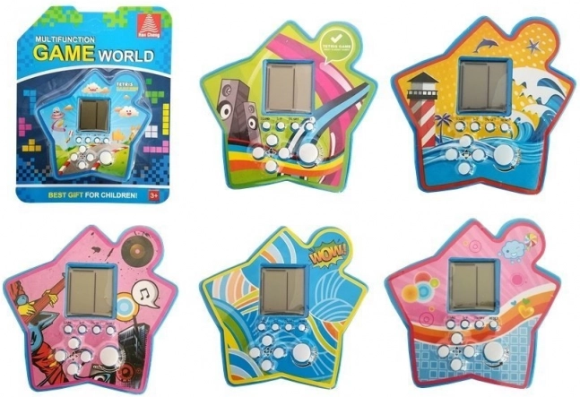 Ciesz się ponadczasową zabawą z kieszonkową elektroniczną grą w kształcie gwiazdy. Mały wyświetlacz LCD, czytelne białe przyciski i kolorowy design czynią z tej konsoli idealnego towarzysza wolnych chwil. Gra Tetris naturalnie rozwija logiczne myślenie, planowanie i szybkie podejmowanie decyzji – każdy usunięty wiersz zwiększa tempo i napięcie.
