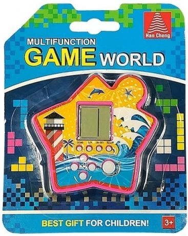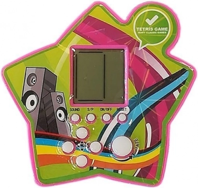Zabawna kieszonkowa gra w kształcie gwiazdy oferuje klasyczny Tetris w kolorowym i lekkim wydaniu. Dzięki kompaktowym wymiarom łatwo zabierzesz ją do szkoły, autobusu czy do domu. Przyciski sterujące pozwalają na obracanie klocków, wstrzymanie gry, wyciszenie dźwięku oraz reset. Idealna do treningu logiki i szybkich reakcji, odpowiednia dla dzieci od 3 lat.