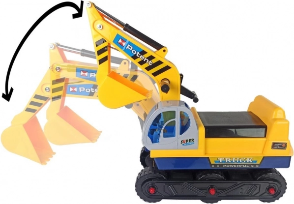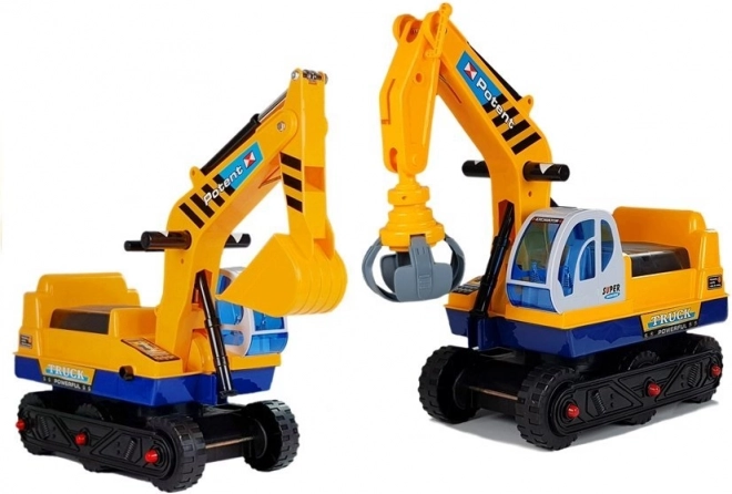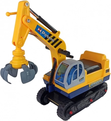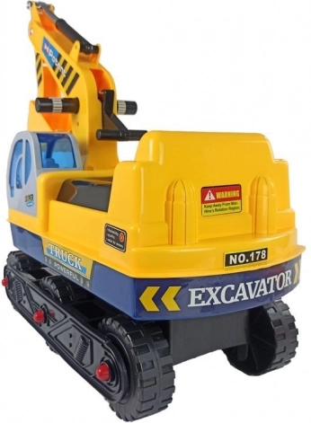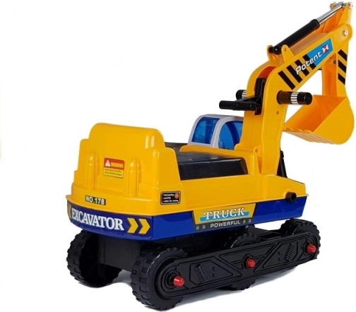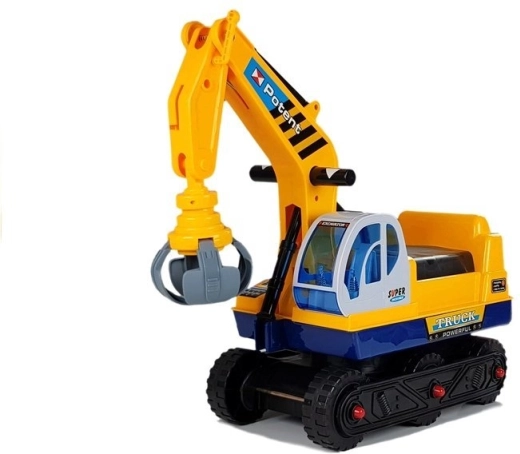 Dziecięcy jeździk w kształcie koparki na gąsienicach zapewnia realistyczną zabawę w budowę. Ma długie ruchome ramię, wymienne nasadki (łyżka i chwytak) oraz stabilną, lekką konstrukcję. Wspiera rozwój motoryki, koordynację i samodzielność dzieci. Odpowiedni dla małych „kierowników budowy” od 3 lat, z udźwigiem do 25 kg.
