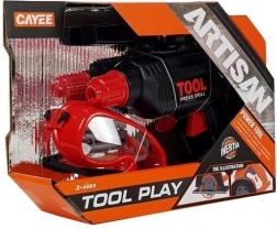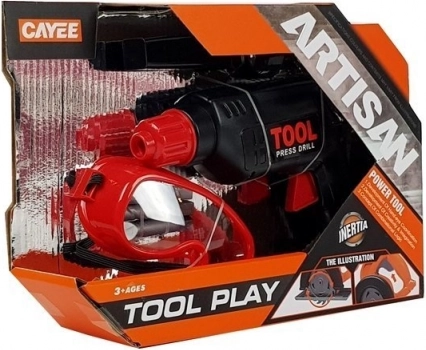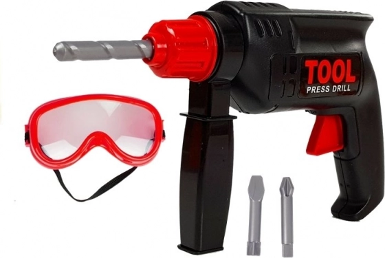 Po naciśnięciu spustu wymienne wiertła obracają się, dzięki czemu dzieci mogą bezpiecznie „wiercić”, wkręcać i ćwiczyć zręczność bez ryzyka. W zestawie znajdują się także ochronne okulary do nauki prawidłowych nawyków bezpiecznej pracy. Produkt wykonany jest z wysokiej jakości, atestowanego plastiku i spełnia normę CE.