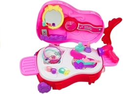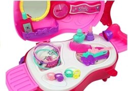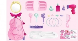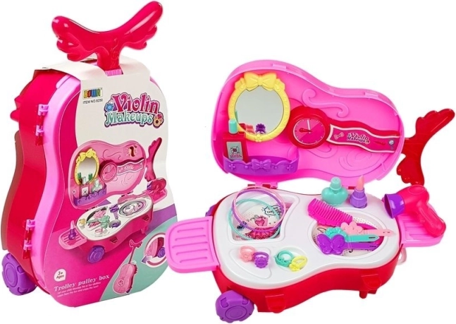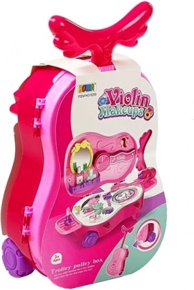 Przenośna toaletka w różowej walizce w kształcie skrzypiec oferuje dzieciom możliwość zabawnego dbania o swój wygląd. Zawiera różne plastikowe akcesoria, które pobudzą wyobraźnię każdego małego stylisty.