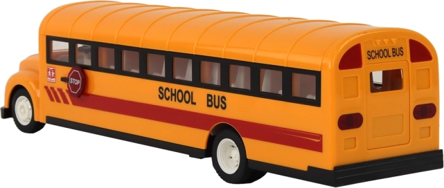 Szkolny autobus z autentycznie ruchomymi drzwiami i sygnalizacją stop zapewnia realistyczne doświadczenia z zabawy.