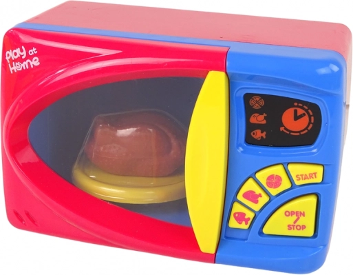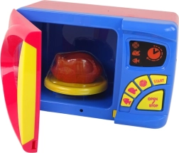 Nasza kuchenka mikrofalowa dla dzieci to świetny wybór dla małych kucharzy, którzy chcą poznać działanie sprzętów kuchennych. Ta kolorowa kuchenka mikrofalowa jest wyposażona w realistyczne przyciski i akcesoria, które wspierają zabawę w odgrywanie ról. Dziecko może za pomocą przycisków z motywami ryby, kurczaka i pizzy wybrać czas podgrzewania, a po naciśnięciu przycisku START uruchomić program. Przycisk OPEN/STOP zatrzymuje podgrzewanie i otwiera drzwiczki.