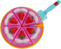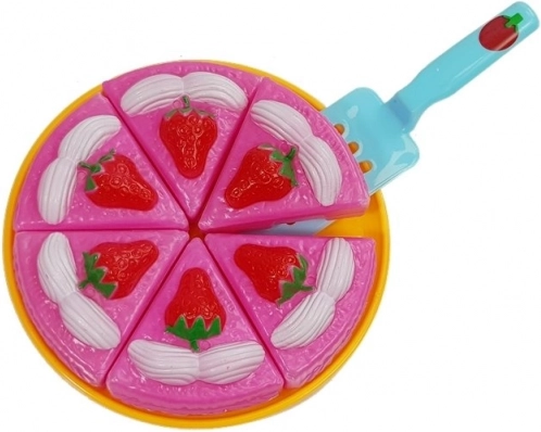 Okrągły tort z sześciu części i łopatką zachęca do dzielenia się, liczenia oraz ćwiczy małą motorykę podczas „krojenia” i podawania.