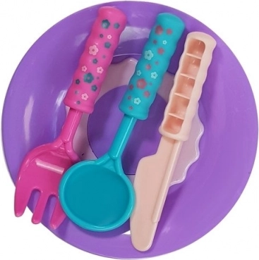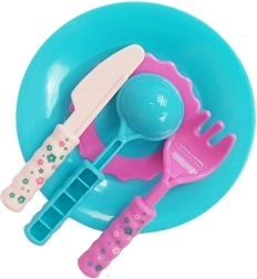 Talerze, widelczyki, łyżeczki i nożyk w wesołych barwach zamieniają każde przyjęcie w świetną zabawę i wspierają samodzielność.