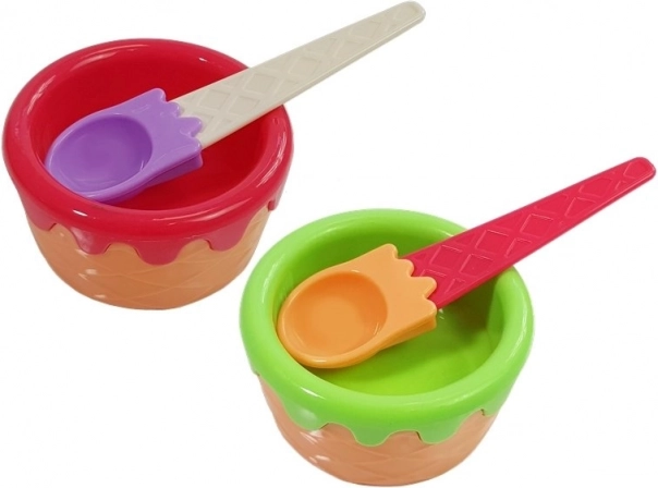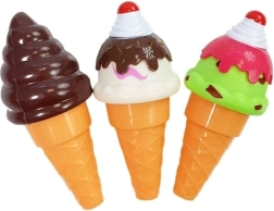 Kolorowe rożki, miseczki i łyżka do lodów umożliwiają mieszanie smaków i tworzenie lodowych kompozycji według wyobraźni.