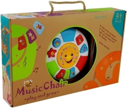 Duże centralne słoneczko odtwarza śmiech i perkusje, a mini pianinko ze zwierzątkami zachęca do odkrywania muzyki.