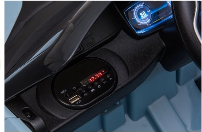 Samochodzik elektryczny napędza akumulator 12 V 4,5 Ah i 2× 45 W silniki, które umożliwiają jazdę w trzech prędkościach z funkcją płynnego startu. Wnętrze zachwyca miękkim siedziskiem z eko skóry, podświetlaną deską rozdzielczą oraz panelem audio z obsługą MP3, USB i kart pamięci.
