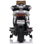 Dziecięcy motocykl akumulatorowy XMX609 w kolorze białym jest idealny dla małych wyścigowców. Ten sportowy model został zaprojektowany, aby przyciągać swoim niezwykłym kolorystyką i konstrukcją. Jest ozdobiony szczegółowymi znakami modelu, które nadają nowoczesny wygląd.