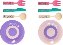 W skład zabawki wchodzą kolorowe miseczki i sztućce, które podnoszą realizm zabawy w prawdziwą ucztę.