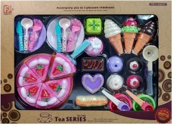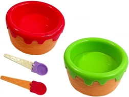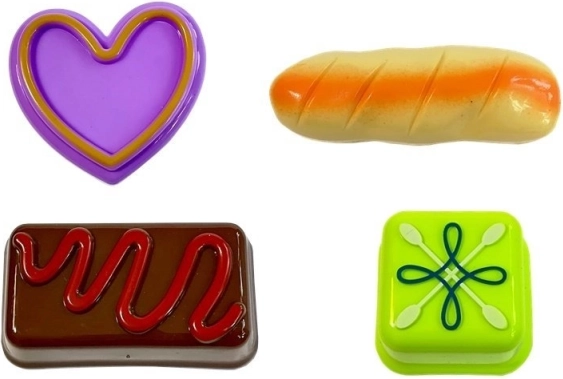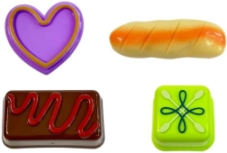 Dzieci mogą cieszyć się zabawą także innymi słodkościami, takimi jak lody różnych typów. Zestaw zawiera akcesoria stołowe i drobne narzędzia w świeżych kolorach, dopełniające zabawę w idealną ucztę.