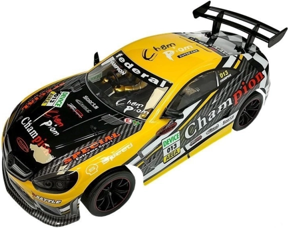 Wydajny sportowy samochód RC w skali 1:10 zapewnia realistyczne wrażenia z wyścigów w domu i na zewnątrz. Dzięki sterowaniu na częstotliwości 2,4 GHz cieszysz się płynną jazdą bez zakłóceń, miękkie gumowe opony gwarantują doskonałą przyczepność, a wytrzymałe nadwozie z PVC wytrzymuje uderzenia i niskie temperatury. W zestawie znajduje się akumulator ładowalny z ładowarką.