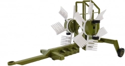Zielono-biała zgrabiarka z obracającymi się palcami uczy dzieci zasad zbierania trawy i siana oraz poszerza możliwości zabawy.