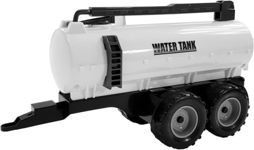 Biała przyczepa-cysterna z solidnymi kołami dla płynnej jazdy. Idealna do realistycznych scenariuszy nawadniania na farmie.
