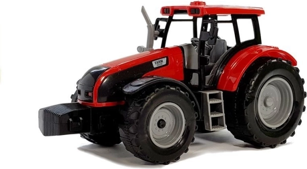Szczegółowo wykonany traktor z dużymi kołami i kabiną zapewnia autentyczne wrażenia z pracy w polu i z łatwością holuje akcesoria.