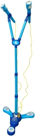 Ten wielofunkcyjny zestaw karaoke w niebieskim kolorze to świetny prezent dla dzieci, które kochają śpiew i występy. Dzięki regulowanemu statywowi i dwóm oddzielnym mikrofonom można śpiewać solo lub w duecie z przyjaciółmi. Efekty świetlne i 12 wgranych melodii zamienią każdy pokój w małą scenę.
