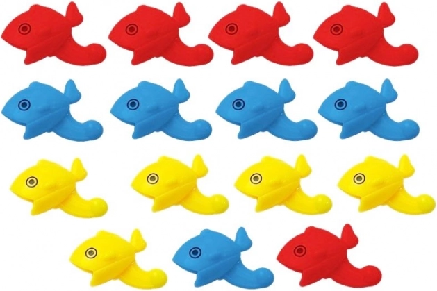 Zestaw zawiera 15 barwnych rybek i 2 wędki. Dzieci ćwiczą cierpliwość, precyzję i koordynację ręka–oko podczas łowienia.