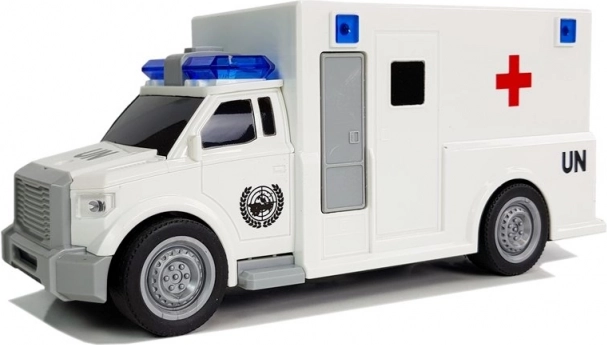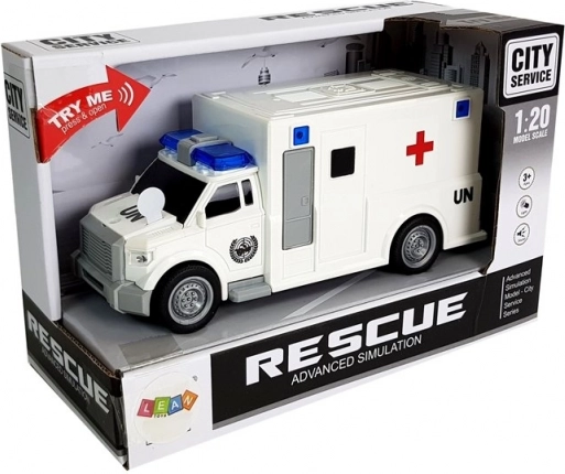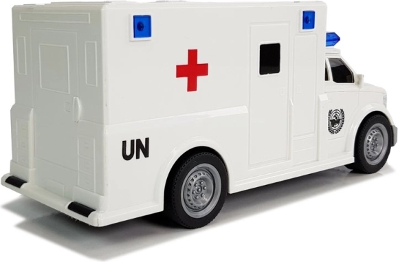 Realistyczna dziecięca karetka w skali 1:20 ze świetlnymi i dźwiękowymi efektami oraz napędem frykcyjnym ucieszy każdego małego ratownika. Ma gumowe koła, jest lekka i wytrzymała, a dzięki kompaktowym wymiarom łatwo się nią steruje. W zestawie są baterie, a produkt posiada certyfikację CE zgodnie z normą EN 71.