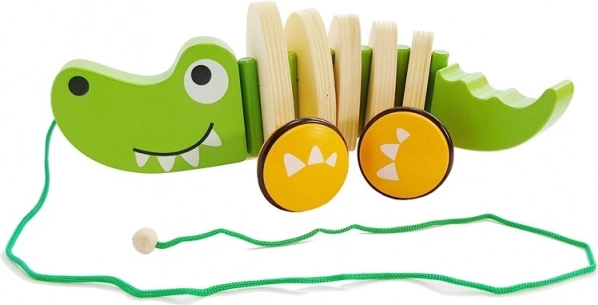 Drewniany pojazd krokodyl to zabawka, która będzie towarzyszyła twojemu dziecku, gdziekolwiek się uda. Wystarczy, że dziecko trzyma sznurek, a krokodyl pójdzie za nim. Ta zabawka nie tylko pomaga w pierwszych krokach, ale także wspiera rozwój umiejętności motorycznych i kognitywnych.