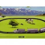 Ten niesamowity zestaw kolejowy jest idealny dla małych maszynistów, którzy chcą doświadczyć unikalnych wrażeń z prowadzenia pociągu. Zestaw zawiera pociąg z dwoma dodatkowymi wagonami, które łatwo mocuje się za pomocą prostych zatrzaskowych połączeń. Trasa składa się z dwóch prostych i dwunastu półokrągłych torów.