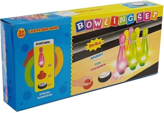 Kolorowy zestaw do kręgli z sześcioma kręglami i efektami świetlnymi to idealna zabawa dla dzieci i dorosłych. Pomaga rozwijać precyzję i koordynację.